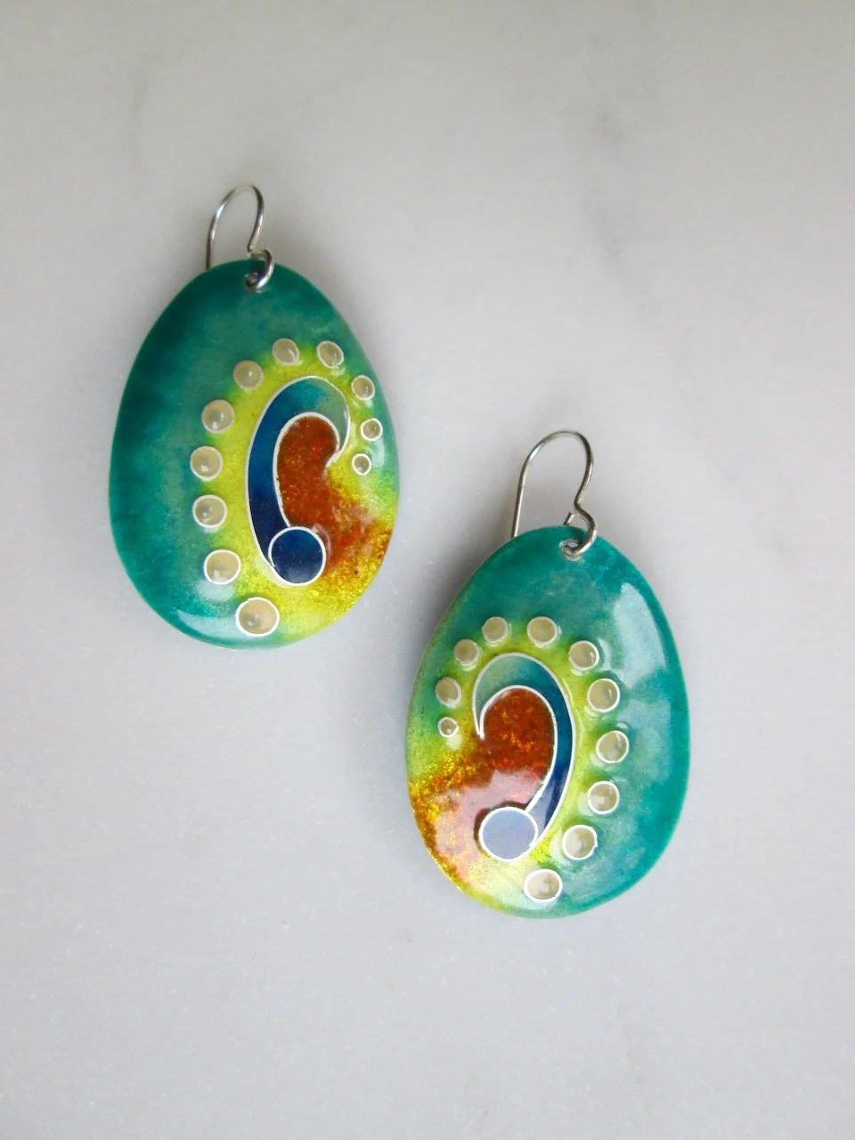 Egg Mosaic Earrings 2020: enamel, silver